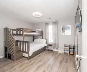 2 Queen Beds, 1 Twin Bed and 3 Twin Bunk Beds