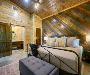 Located in Broken Bow, this cabin is within a 15-minute drive of Beaver's Bend Mining Company and Hochatown Rescue Center & Petting Zoo. This luxury cabin is 8.6 mi (13.8 km) from Beavers Bend State Park and 3.7 mi (5.9 km) from Vojai's Winery.