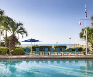 With a stay at Hampton Inn & Suites Myrtle Beach/Oceanfront in Myrtle Beach, you'll be on the beach, steps from Myrtle Beach Beaches and a 2-minute drive from Myrtle Beach Boardwalk. This beach hotel is 4.2 mi (6.7 km) from Broadway at the Beach and 0.9 mi (1.5 km) from Family Kingdom Amusement Park.