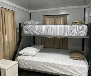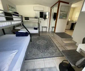1 Double Bed, 1 Twin Bunk Bed and 1 Large Twin Futon